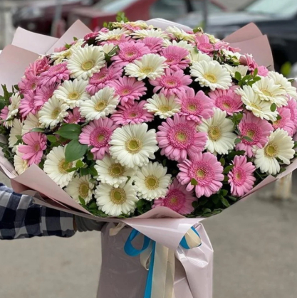 Букет из 101 белой и розовой герберой | Купить в Токио